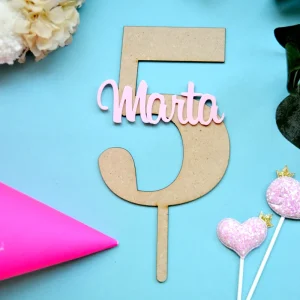Topper para celebraciones de aniversarios, producido en madera MDF con los años a elegir y los nombres, fecha o frase grabado sobre la base, ideal para guardarlo para siempre como recuerdo de un día tan especial y bonito.