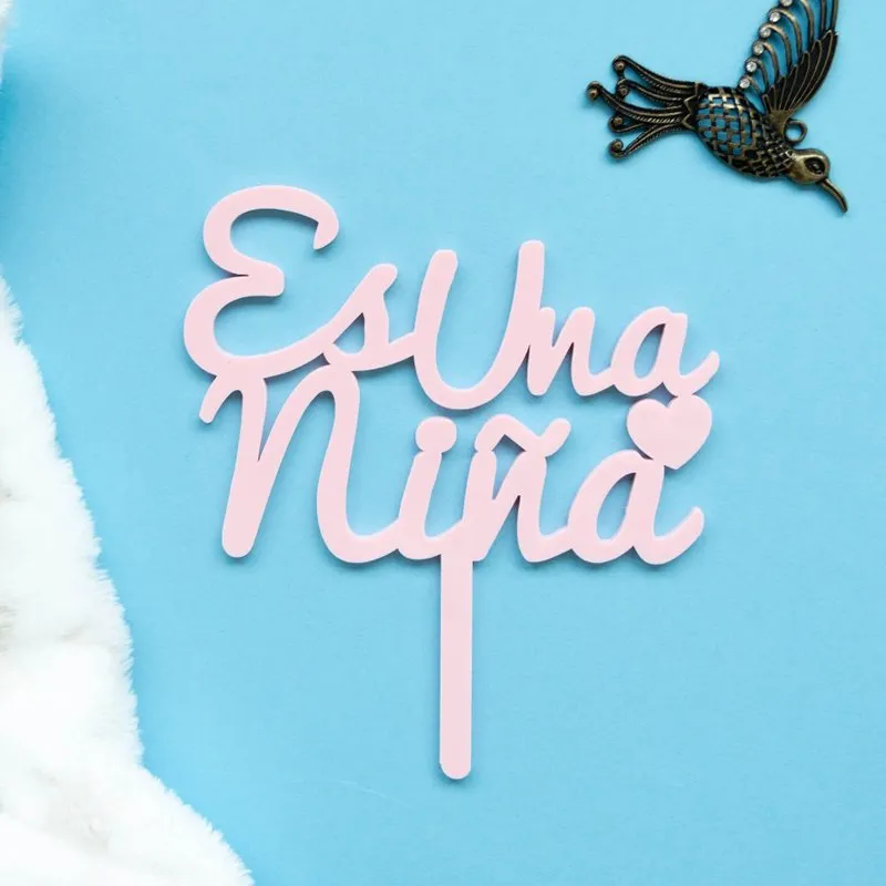 ¡Es una Niña! Este topper en acrílico de color rosa bebé es ideal para decorar tartas y mesas dulces en Baby Showers o nacimientos en los que el protagonista sea una niña. Si quieres otro color, puedes pedirlo en los comentarios del pedido, el resto del diseño se mantiene como el de la foto.