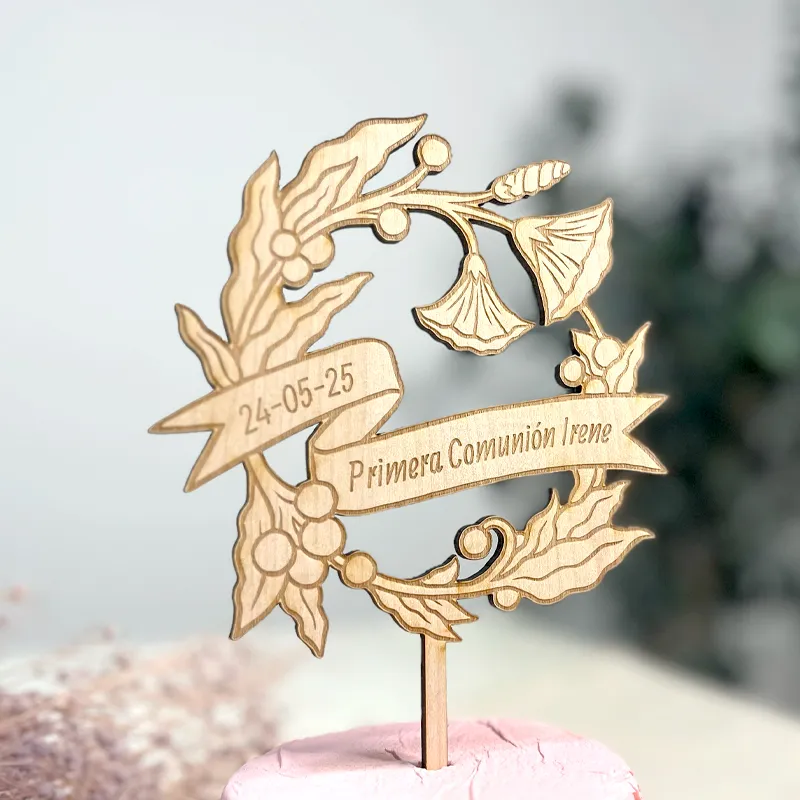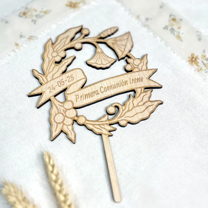 Topper especial corona de Primera Comunión personalizada con la fecha y el nombre del protagonista o el texto que más te guste.