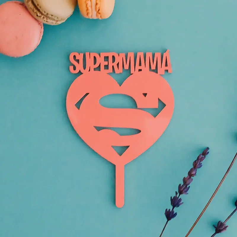 Topper especial con la palabra SUPERMAMÁ y un corazón, para hacer aún más especial el Día de la Madre y demostrarle todo lo que la quieres. También puedes incluir un mensaje personalizado en una tarjeta para enviarlo como regalo, indicándolo en los comentarios del pedido, al final del proceso de compra.