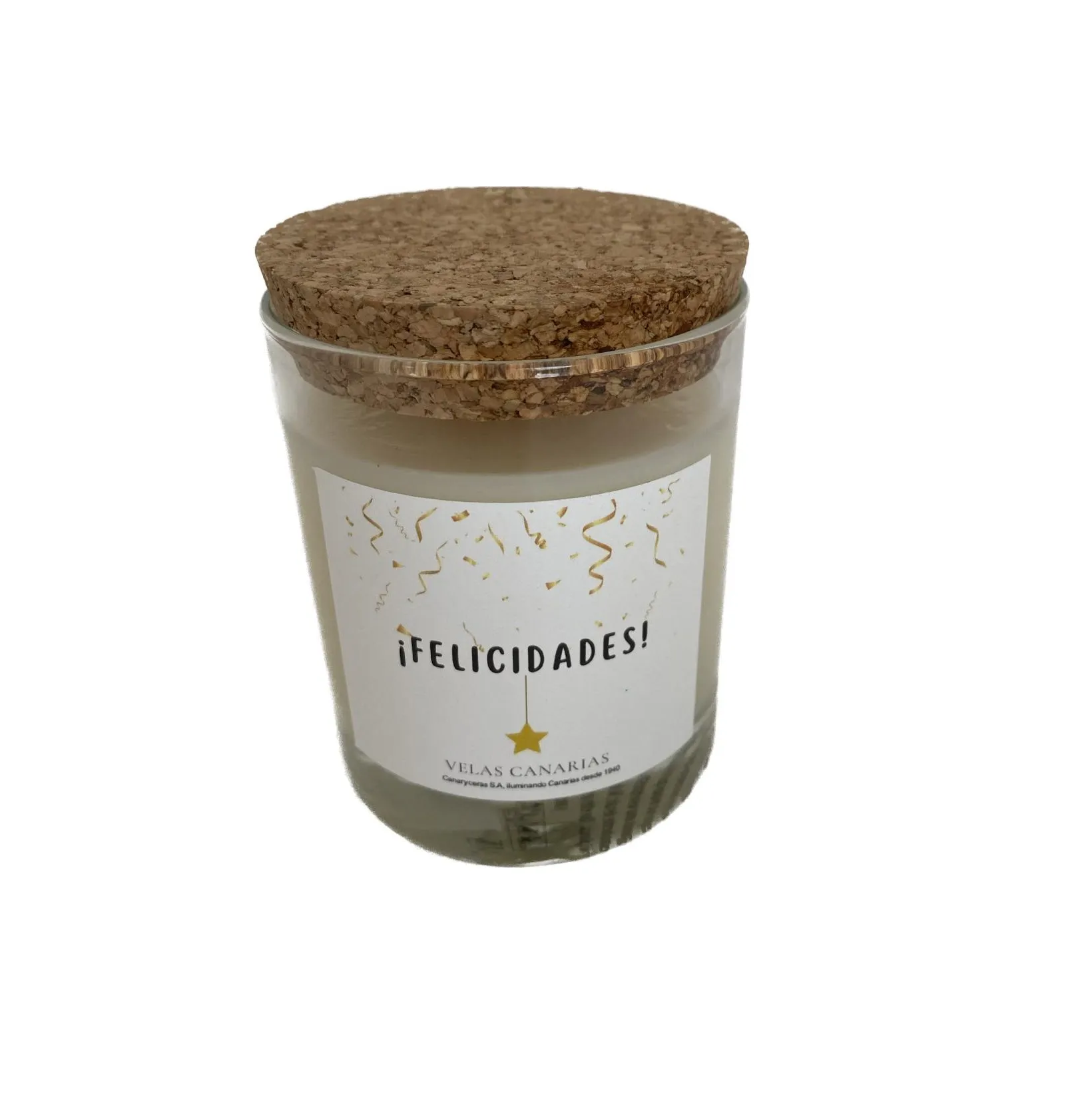 Vela en vaso vertida a mano en Tenerife con mensaje a elegir. Duración aproximada de 35h