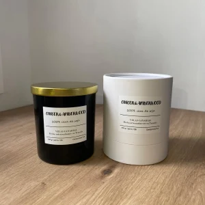 Vela en vaso vertida a mano en Tenerife. Aroma a elegir. Elige tu frase.