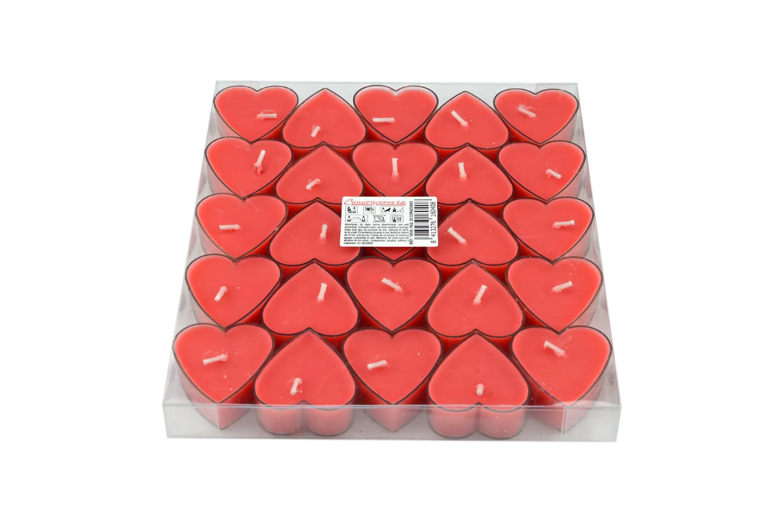 Vela de té corazón plástico pack 30ud.