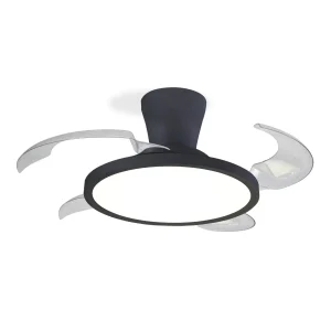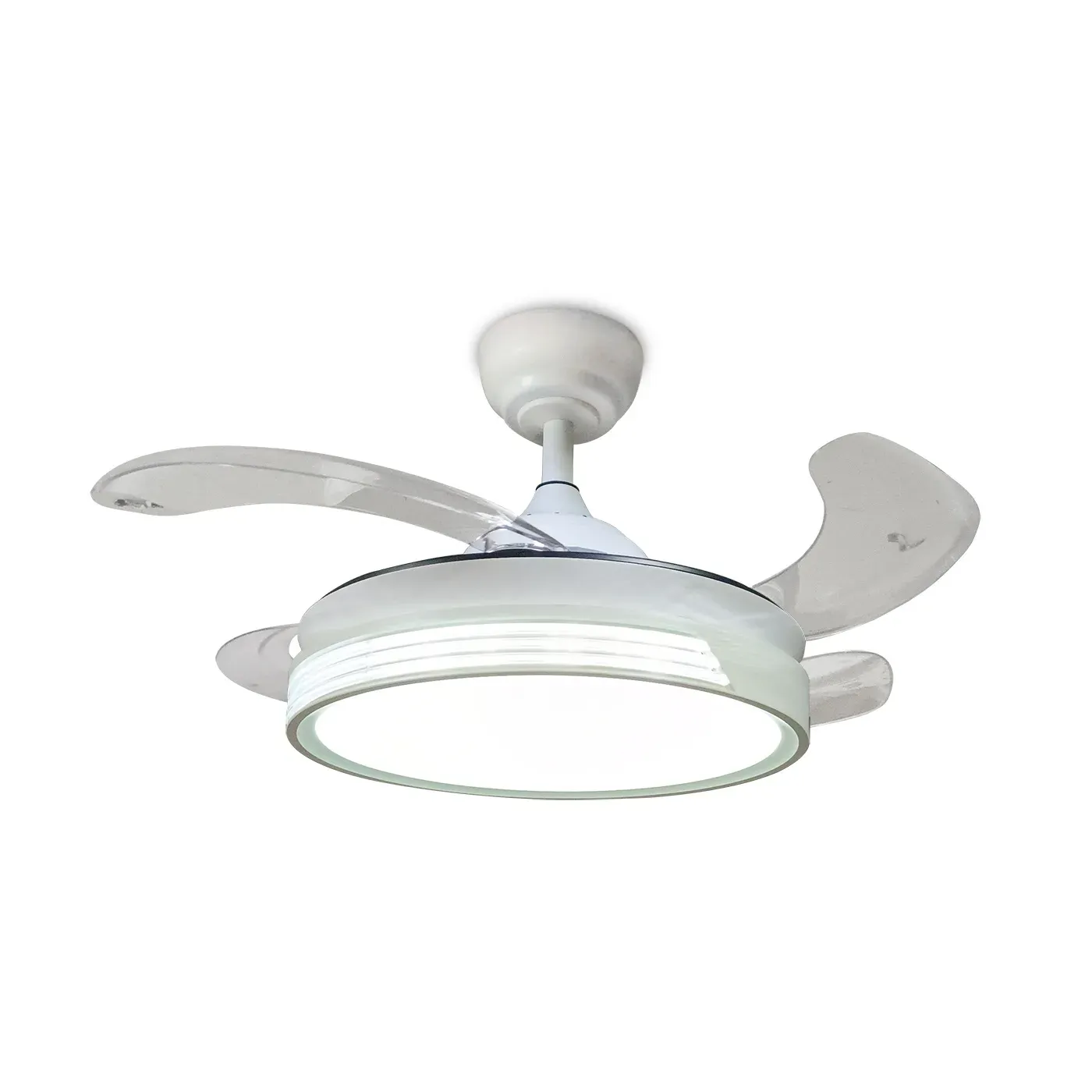 El ventilador de techo Brezza combina diseño compacto, funcionalidad y eficiencia energética, siendo ideal para estancias de 10 a 15 m². Su sistema de aspas escamoteables permite que, cuando está apagado, tenga una apariencia discreta de 40 cm de diámetro, y al activarlo, despliegue sus 4 aspas hasta 90 cm, proporcionando un flujo de aire potente y eficiente.