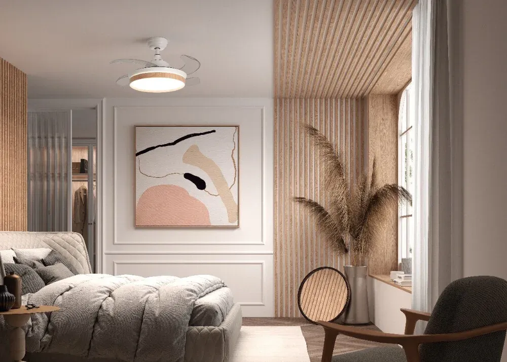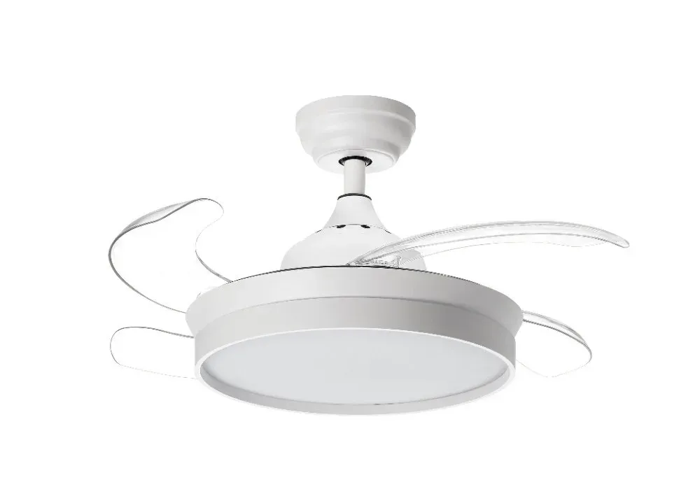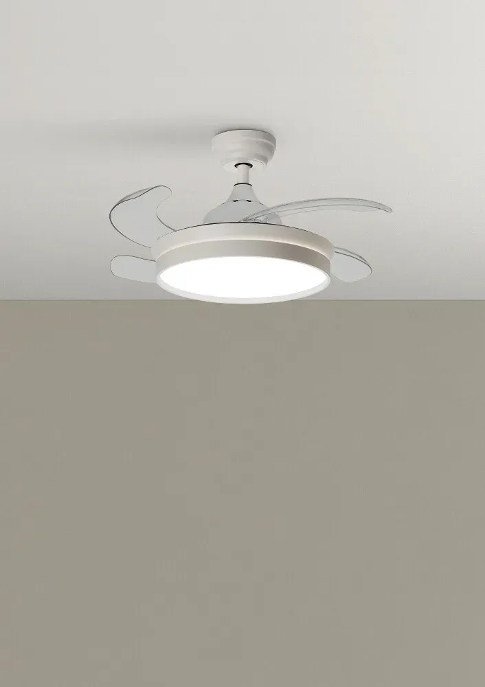 El Ventilador de Techo Retráctil Blanes en acabado blanco es una solución completa y elegante para la ventilación e iluminación de tus estancias: Mini ( de 8 a 15 m²) y Estándar (de 15 a 30 m²). Equipado con un motor DC de 22W en el mini y de 32W en el estándar, ofrece un funcionamiento extremadamente silencioso y eficiente, con 6 velocidades ajustables para adaptarse a tus necesidades. Sus 4 aspas retráctiles transparentes se despliegan al encenderlo y se ocultan al apagarlo, proporcionando un diseño limpio y moderno. La iluminación LED integrada de 24W (mini), 36W (estándar), proporciona 2400 o 3800 lúmenes según modelo, con temperatura de color regulable entre 3000K, 4000K y 6000K, permitiendo crear diferentes ambientes según tus preferencias. Además, cuenta con función de memoria para recordar la última configuración utilizada. Incluye un mando a distancia que permite controlar tanto la velocidad del ventilador como la iluminación, ofreciendo comodidad y facilidad de uso. El ventilador dispone de función verano/invierno, optimizando la circulación del aire en todas las estaciones. Con un flujo de aire de 6130 m³/h en el mini y de de 6917 m³/h en el estándar, y una inclinación máxima de techo de 13°, se adapta a diversas configuraciones de instalación. Incluye dos tamaños de barra para ajustar la altura según tus necesidades. Este ventilador es una solución eficiente y estilizada para mantener tus espacios confortables durante todo el año.