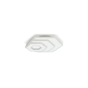 Plafón LED modelo Prometeo con diseño geométrico hexagonal en blanco