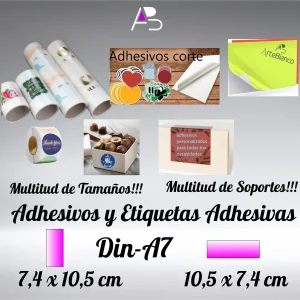 Adhesivos Din-A7, 7,4 x 10,5 cm, en papel flúor o Neón, impresión con tinta negra