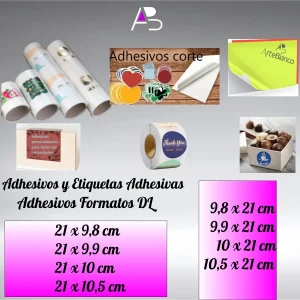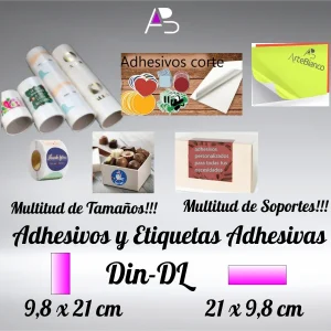 Adhesivos Din-DL 9,8 x 21 cm, en papel flúor o Neón, impresión con tinta negra
