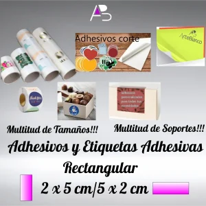 Adhesivos 2 x 5 cm papel flúor o Neón, impresión con tinta negra