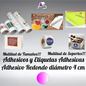 Etiquetas adhesivas en Bobina, Redondo de 4 cm de diámetro papel Natural Blanco con marcado Fieltro, Antimoho
