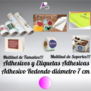 Etiquetas adhesivas en Bobina, Redondo de 7 cm de diámetro papel Natural Blanco con marcado Fieltro, Antimoho