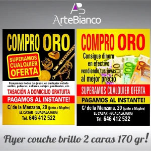 Flyers en couché de 170 gr estucado brillo impresos todo color 2 caras
