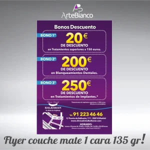 Flyers en couché de 135 gr estucado mate impresos todo color 1 cara