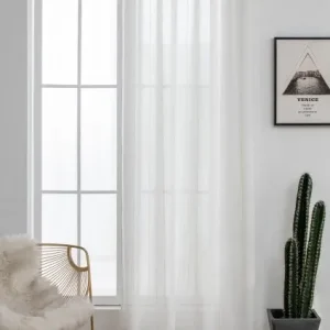 Cortinas De Visillo Tránslucido Lino y Poliéster Decorado Con líneas Verticales Entre Una Línea Blanca 150x260cm