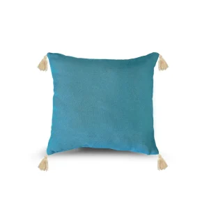 Cojín Terciopelo y Lino Con Flecos En Los Laterales
