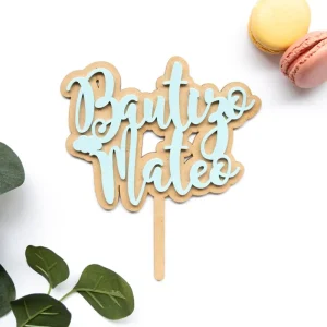 Topper personalizado acrílico con base en madera (1, 2 ó 3 líneas)
