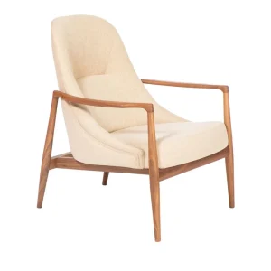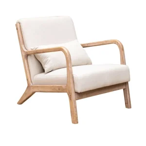 Butaca Chassepierre de madera de caucho tapizada Beige