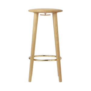 Taburete alto Curious en madera de roble y acero tapizado Sugar Brown