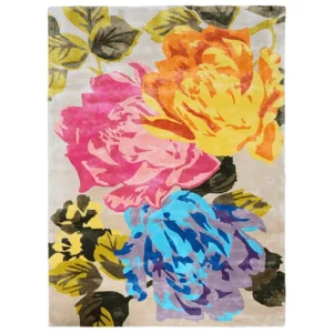 Alfombra hecha por encargo con dibujo geómetrico de colores