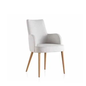 Silla tapizada con brazos redondeados y respaldo recto