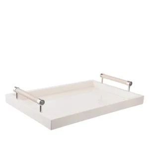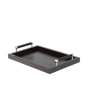 Bandeja lacada en alto brillo con asas en piel de Riviere