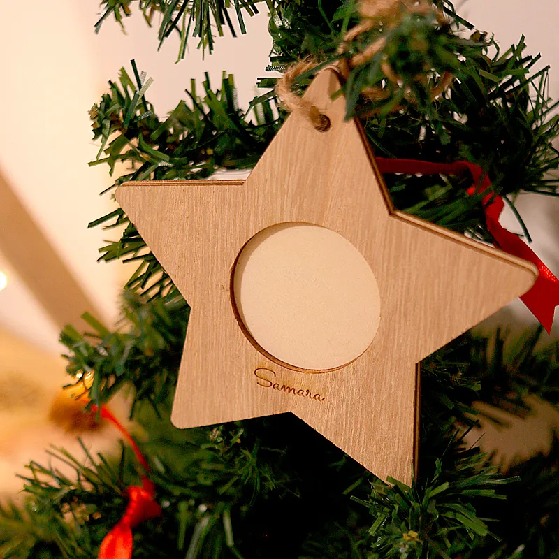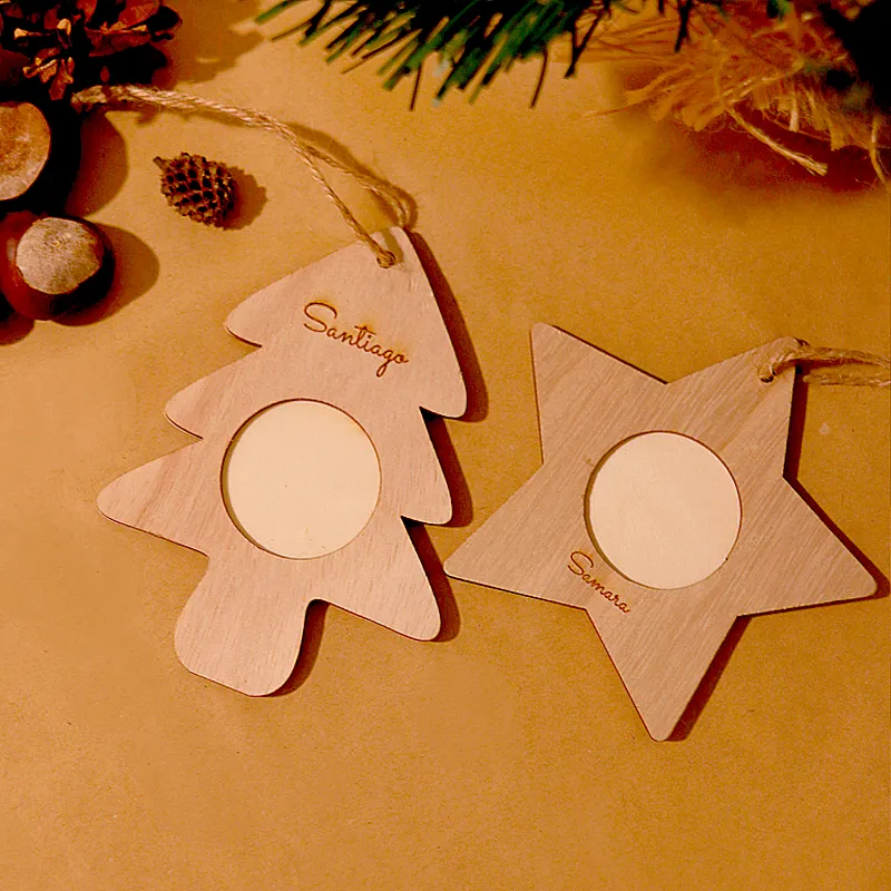 Disponibles en forma de abeto o estrella, con espacio de 4cm de diámetro para la fotografía.