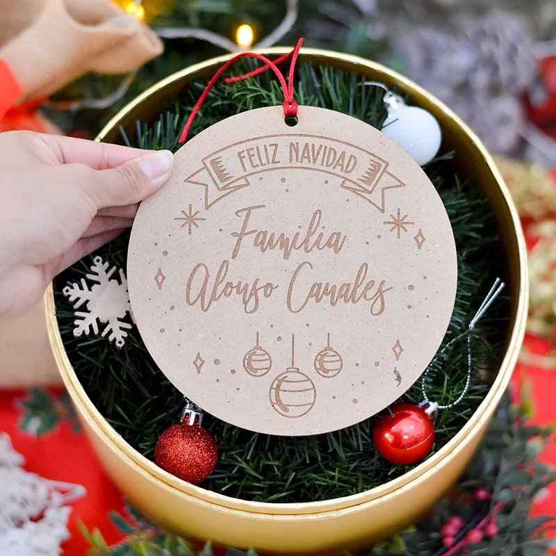 Esta Navidad, elige nuestra bola de Navidad gigante personalizada en madera con los nombres de tu familia. Puedes elegir el formato «Familia + apellido + apellido» o poner los nombres de cada miembro de la familia para estar todos juntos, ¡tú eliges!