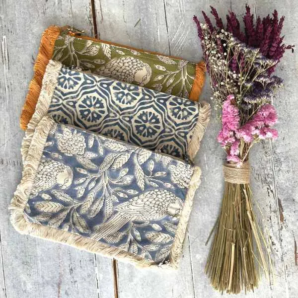 Fabricados 100% algodón están forrados por dentro de tela en el mismo tono. Además tienen cremallera adornada con una pequeña asa del mismo tono para sujetarlo con comodidad ideal en el mismo tono del bolso en la parte superior.