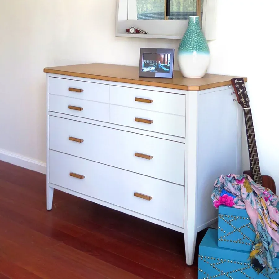 La cómoda Barcelona es el centro de ésta colección de muebles de diseño actual realizados en madera. Tiene dos cajones camuflados por 6 falsos cajones en el exterior con mucho almacenamiento. Seguro que es una buena adición a los muebles de su dormitorio.