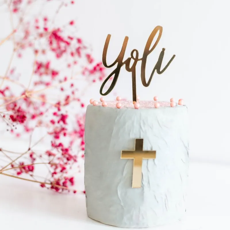 Minitoppers con diseño de Cruz ideales para utilizar en tartas, cupcakes o pasteles de Primera Comunión, disponibles en diferentes colores.