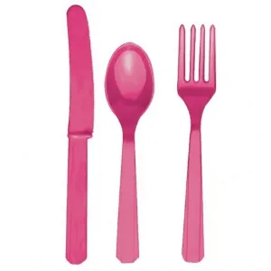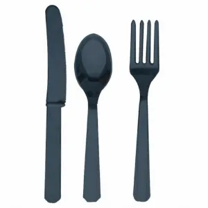 Este Set de 24 Cubiertos plastico colores incluye tenedores, cuchillos y cucharas con acabado en diferentes colores a elegir según el color de tu fiesta. Estos cubiertos plastico son reutilizables y lavables también en lavavajillas. Al poder elegir el color son el complemento perfecto para la decoración de tu fiesta. Combínalo con pajitas, vasos, platos y servilletas de nuestras colecciones y tendrás una fiesta ideal.