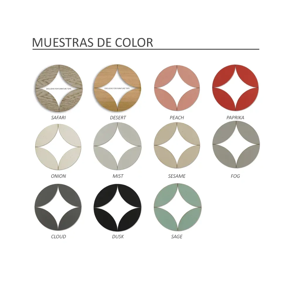 Se pueden elegir entre dos acabados para la tapa: safari (roble) o desert (cerezo) y combinar con 9 colores para la estructura.