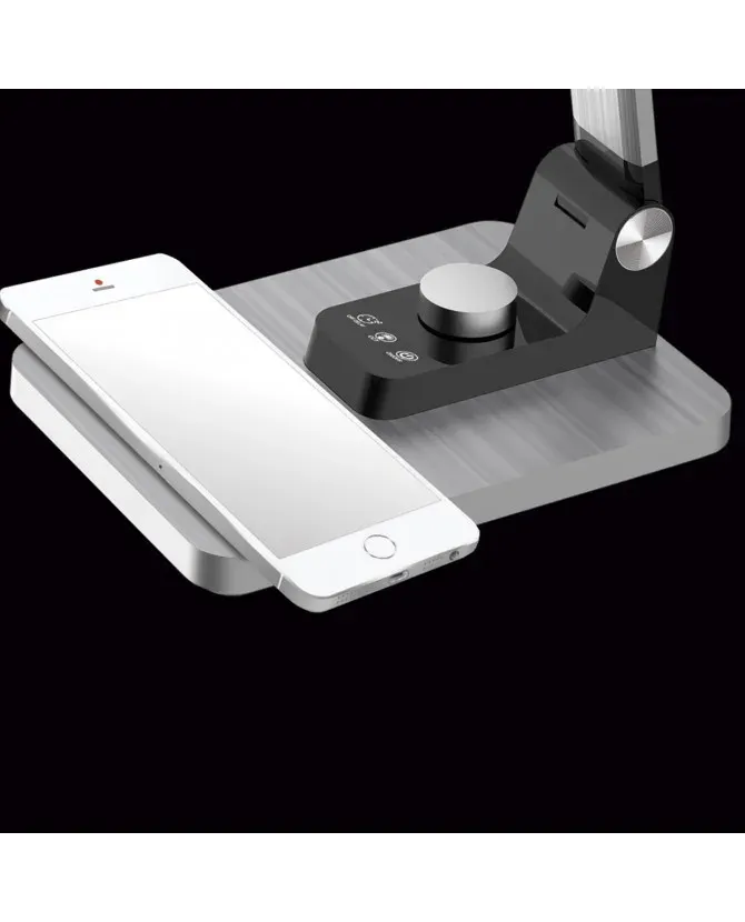 Lámpara de escritorio Nelson LED 10W con regulador de intensidad, cambio de color de luz, carga rápida inalámbrica y diseño plegable. Ideal para oficinas y espacios modernos.