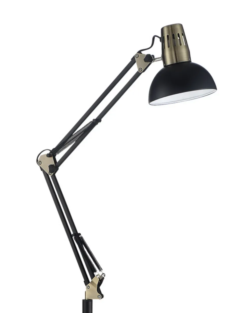 La lámpara de pie articulable Artic combina diseño y funcionalidad, perfecta para iluminar espacios de trabajo, lectura o rincones acogedores en el hogar. Su diseño tipo flexo permite ajustar la luz en diferentes posiciones para adaptarse a tus necesidades. Fabricada con materiales resistentes y un acabado elegante, esta lámpara es ideal para entornos modernos o industriales. Compatible con bombillas de rosca grande E27, ofrece versatilidad en la elección de la iluminación, ya sea cálida, neutra o fría (bombilla no incluida). Un complemento práctico y decorativo que encajará perfectamente en oficinas, salones o dormitorios.