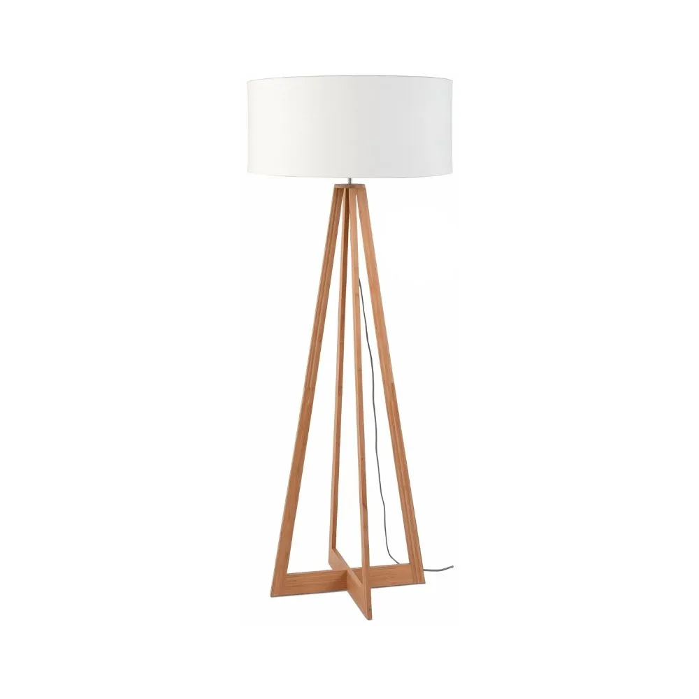 La lámpara de pie Everest de la marca It’s About RoMi está fabricada en madera de bambú, combinada con una pantalla de tela en color beige que aporta un toque cálido y natural. Su pie en forma de trípode cruzado es robusto y garantiza estabilidad. Con una altura de pie de 128 cm y una altura total de 159 cm, tiene una presencia imponente pero elegante. Incluye un portalámparas compatible con bombillas E27 y un cable de 250 cm. Disponible en versión lámpara de mesa.