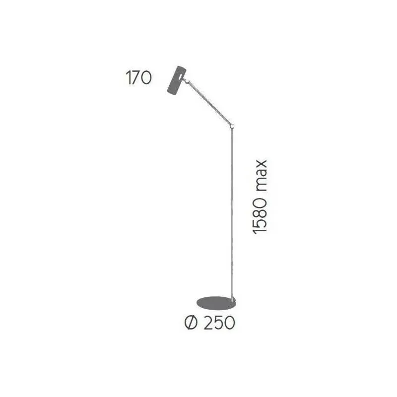 Lámpara de pie Pago de Aromas del Campo regulable en altura y con la cabeza vasculante. Fabricada en acero cromado con detalles negros.