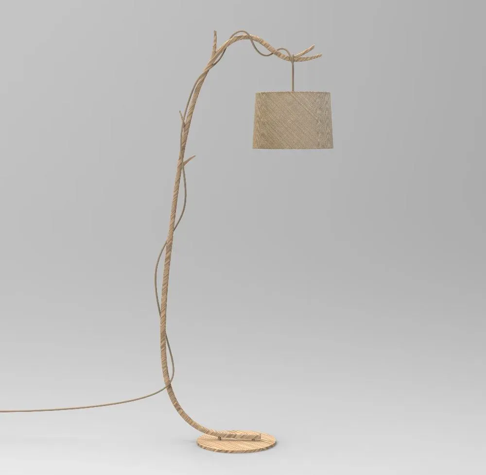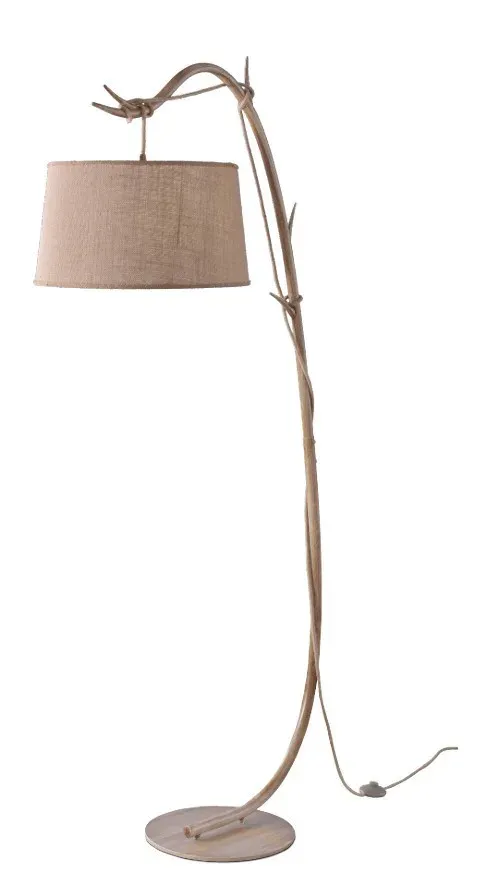 La lámpara de pie Sabina destaca por su diseño que evoca la naturaleza, combinando una estructura metálica con acabado en imitación madera y una pantalla textil en tonos marrón claro. El cable cuenta con un revestimiento textil que emula una cuerda, reforzando su estética rústica y natural. Con una altura de 182 cm y un ancho de 81 cm, esta lámpara es ideal para iluminar salones, dormitorios o cualquier espacio que requiera una iluminación acogedora. Dispone de un casquillo E27 para una bombilla de hasta 40W (no incluida), siendo recomendable el uso de bombillas LED para mayor eficiencia energética.