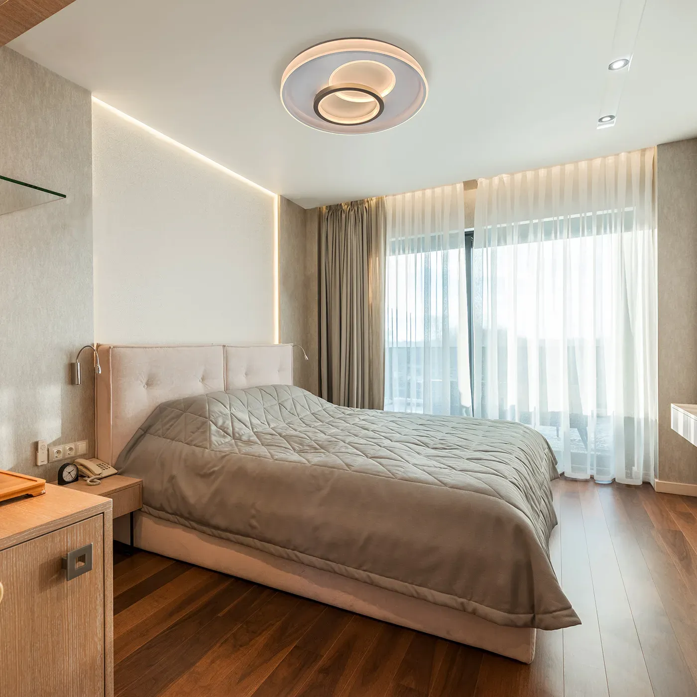 Entre sus características avanzadas, el Plafón LED Lara incluye control mediante mando a distancia y aplicación móvil, lo que facilita la gestión de la luz sin necesidad de usar interruptores convencionales. Además, incorpora memoria de encendido, manteniendo la última configuración seleccionada al volver a encenderse.
