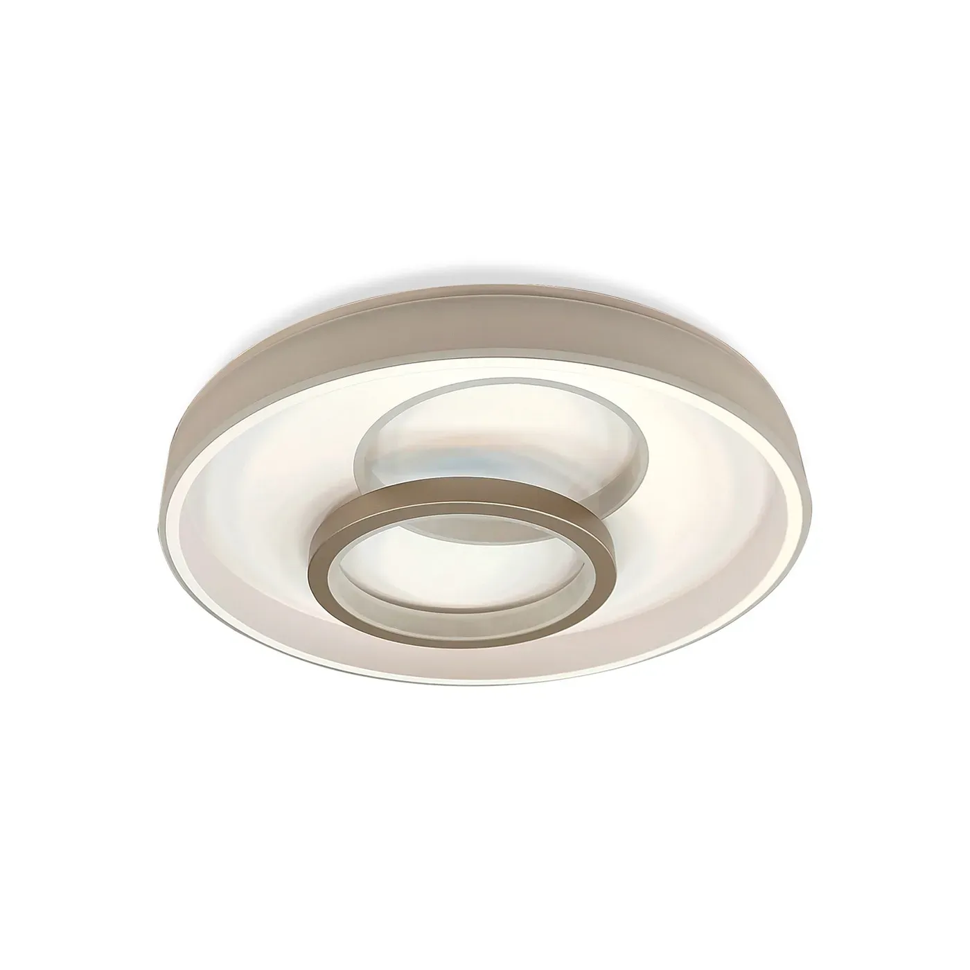 La Lámpara de Techo Plafón LED Lara Blanco + Greige es la combinación perfecta de diseño moderno y funcionalidad avanzada. Su estructura circular minimalista, con dos círculos interiores superpuestos, crea un efecto visual dinámico y elegante, convirtiéndola en un elemento decorativo ideal para cualquier estancia.