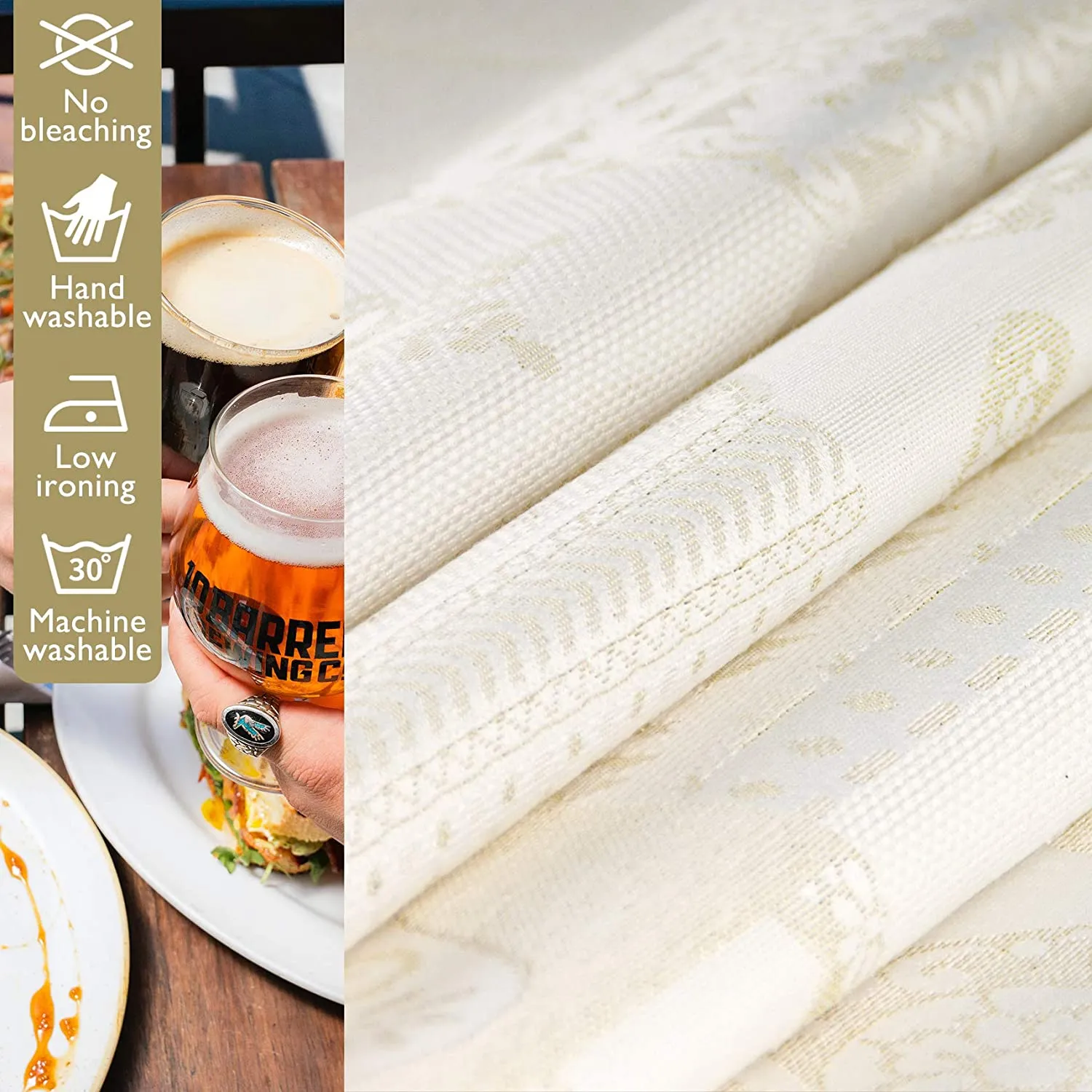 🎄【COMPOSICION DE ALTA CALIDAD】: Fabricado con una mezcla de 60% Poliéster, 30% Algodón y 10% Poliamida, este mantel combina durabilidad, suavidad y resistencia, asegurando una larga vida útil y un tacto cómodo.