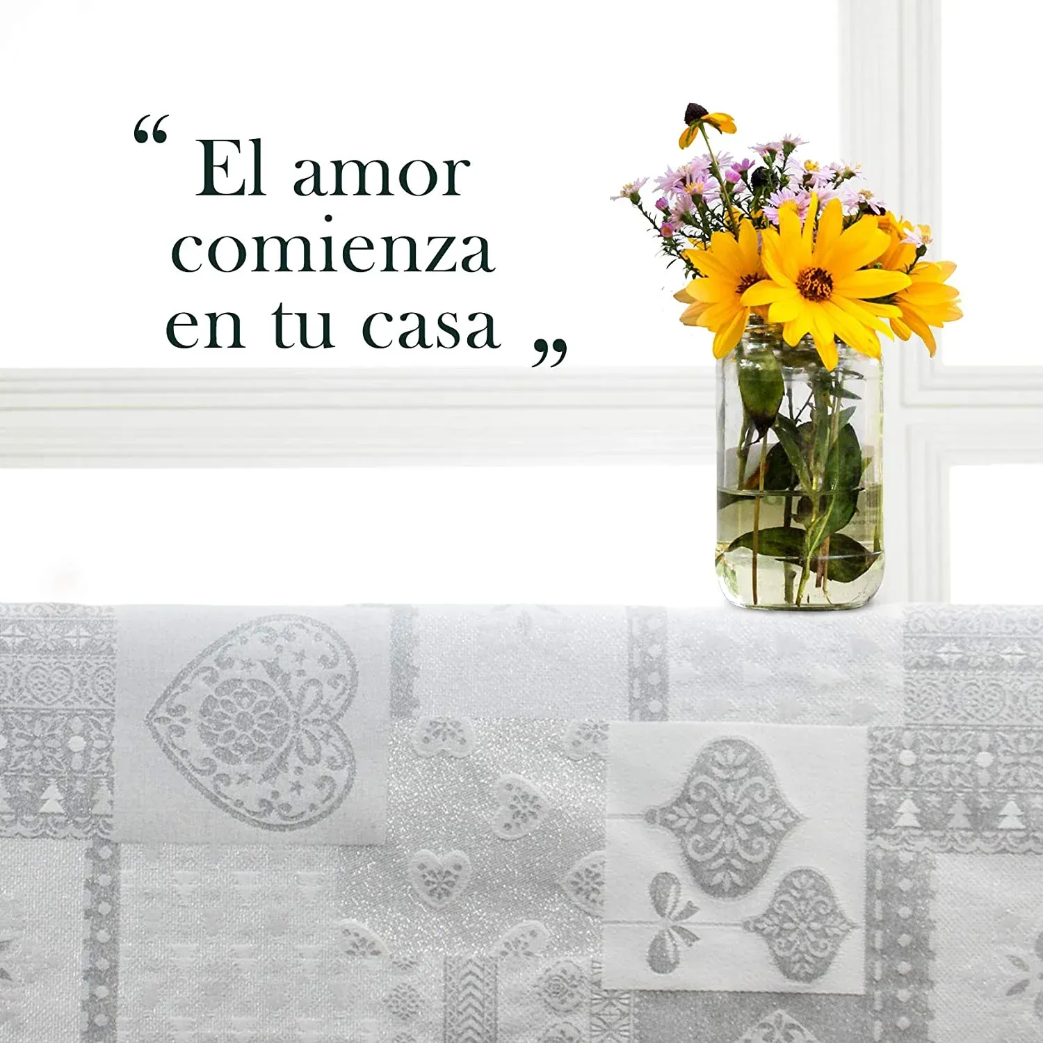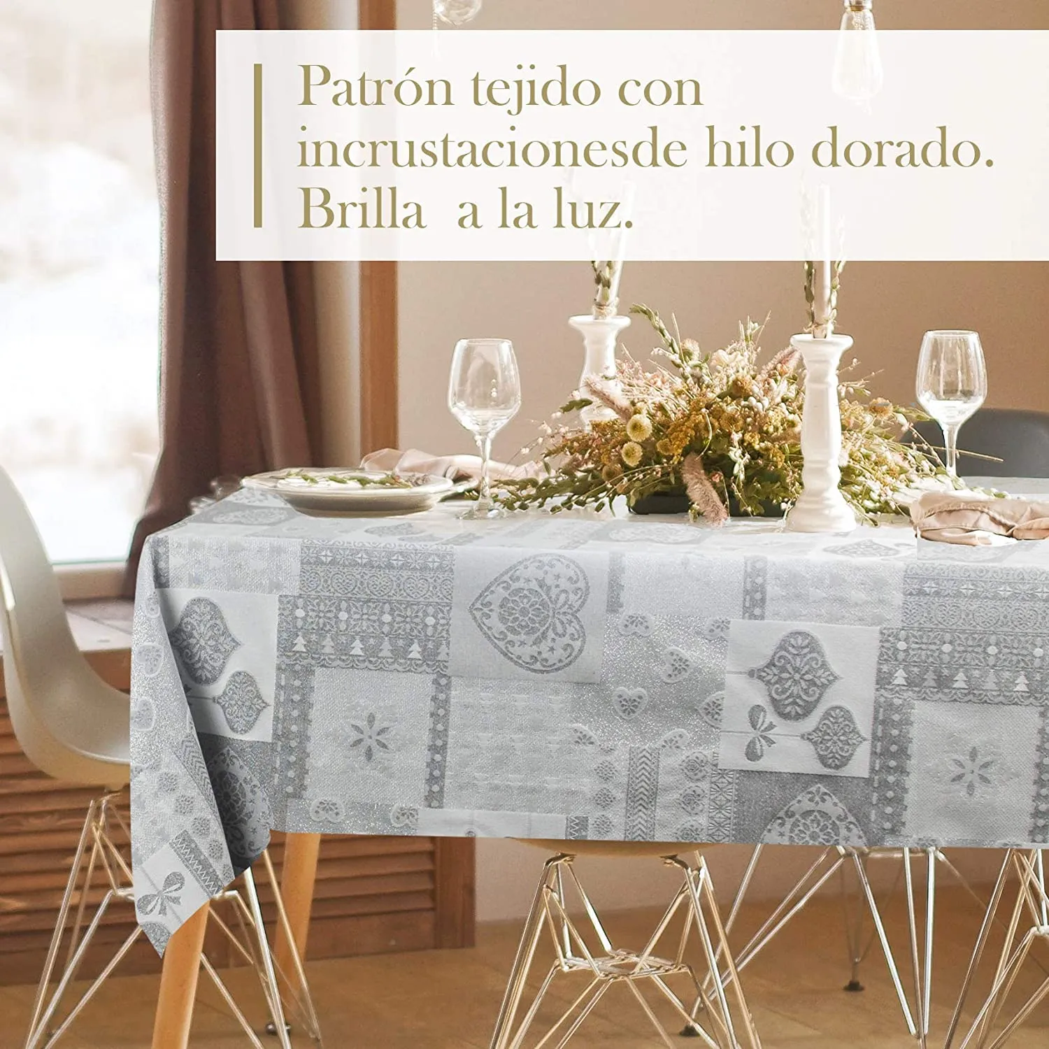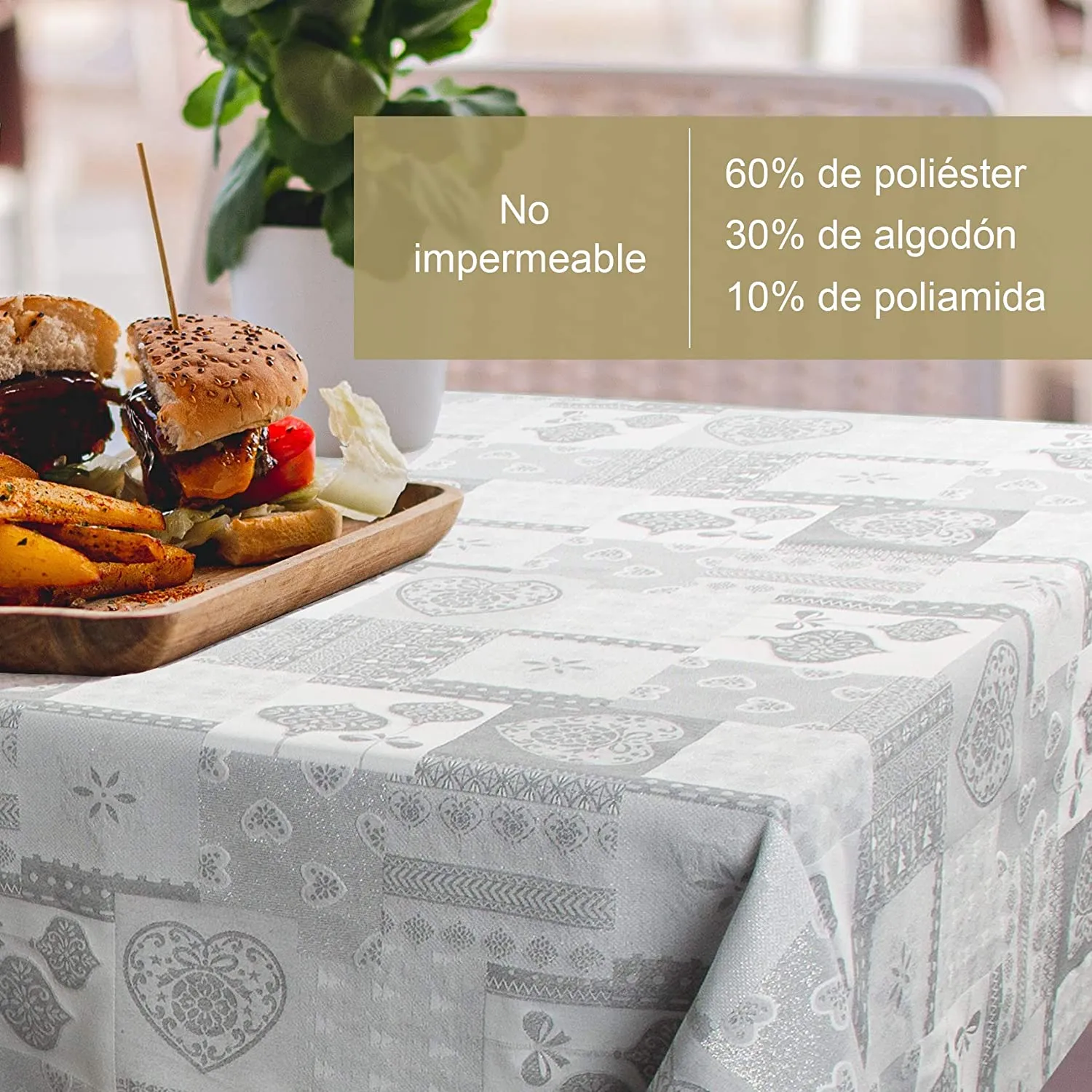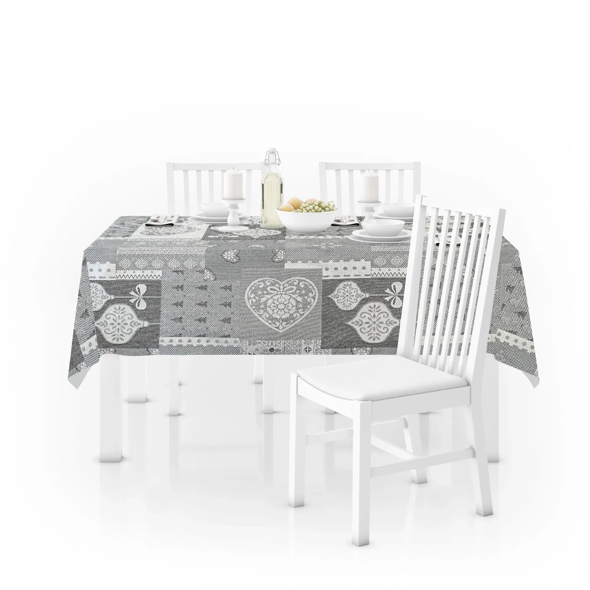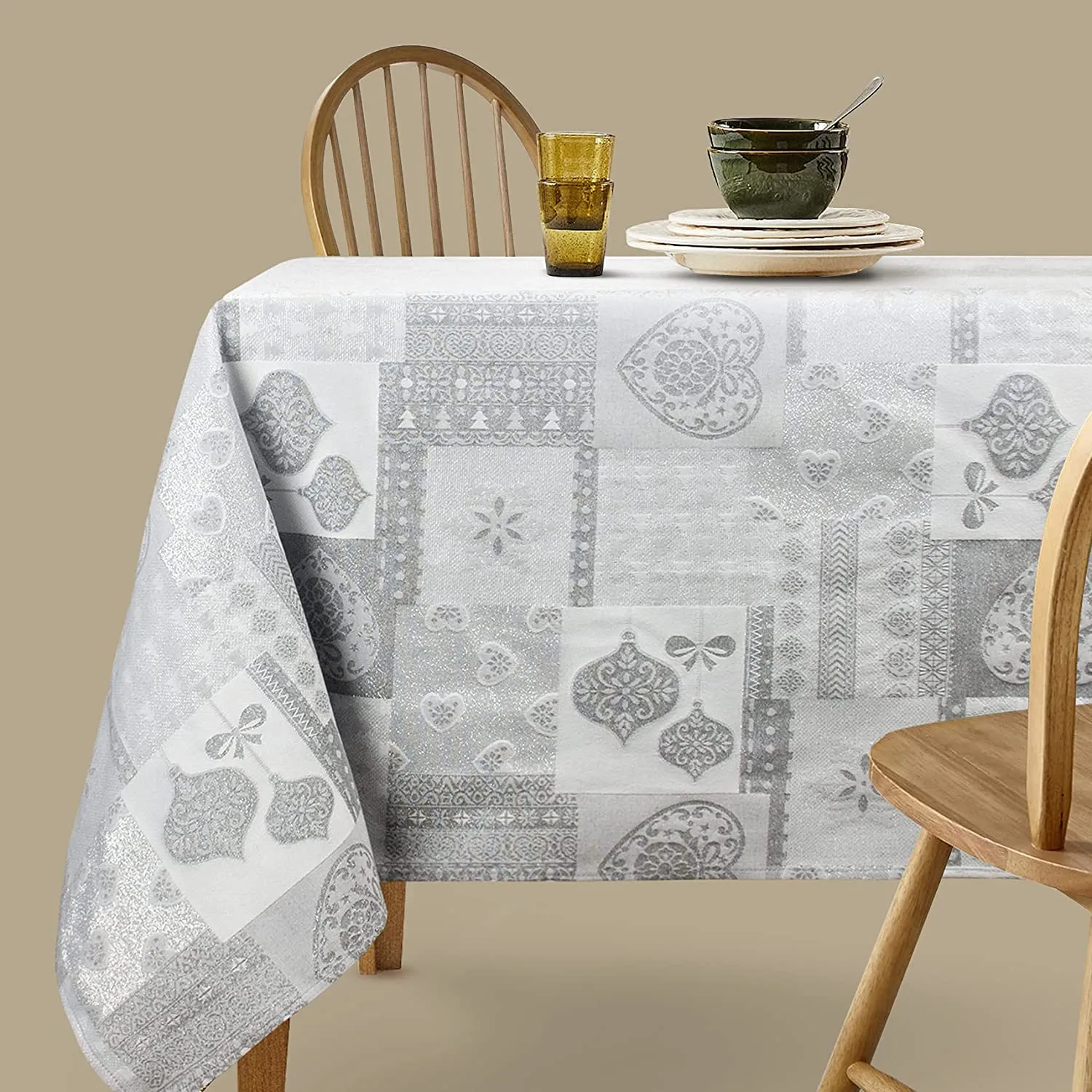 Mantel De Navidad Multilla 60% Poliéster, 30% Algodón, 10% Poliamida Con Diseño Corazones Gris Claro