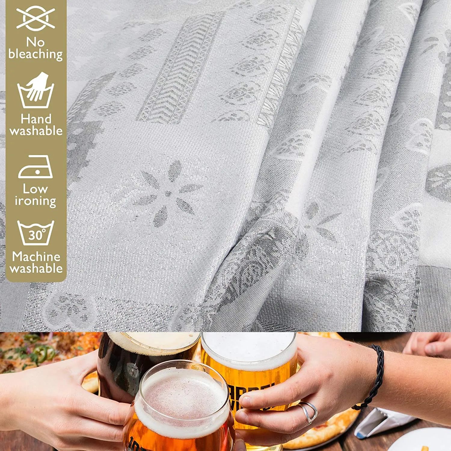 🎄【COMPOSICION DE ALTA CALIDAD】: Fabricado con una mezcla de 60% Poliéster, 30% Algodón y 10% Poliamida, este mantel combina durabilidad, suavidad y resistencia, asegurando una larga vida útil y un tacto cómodo.