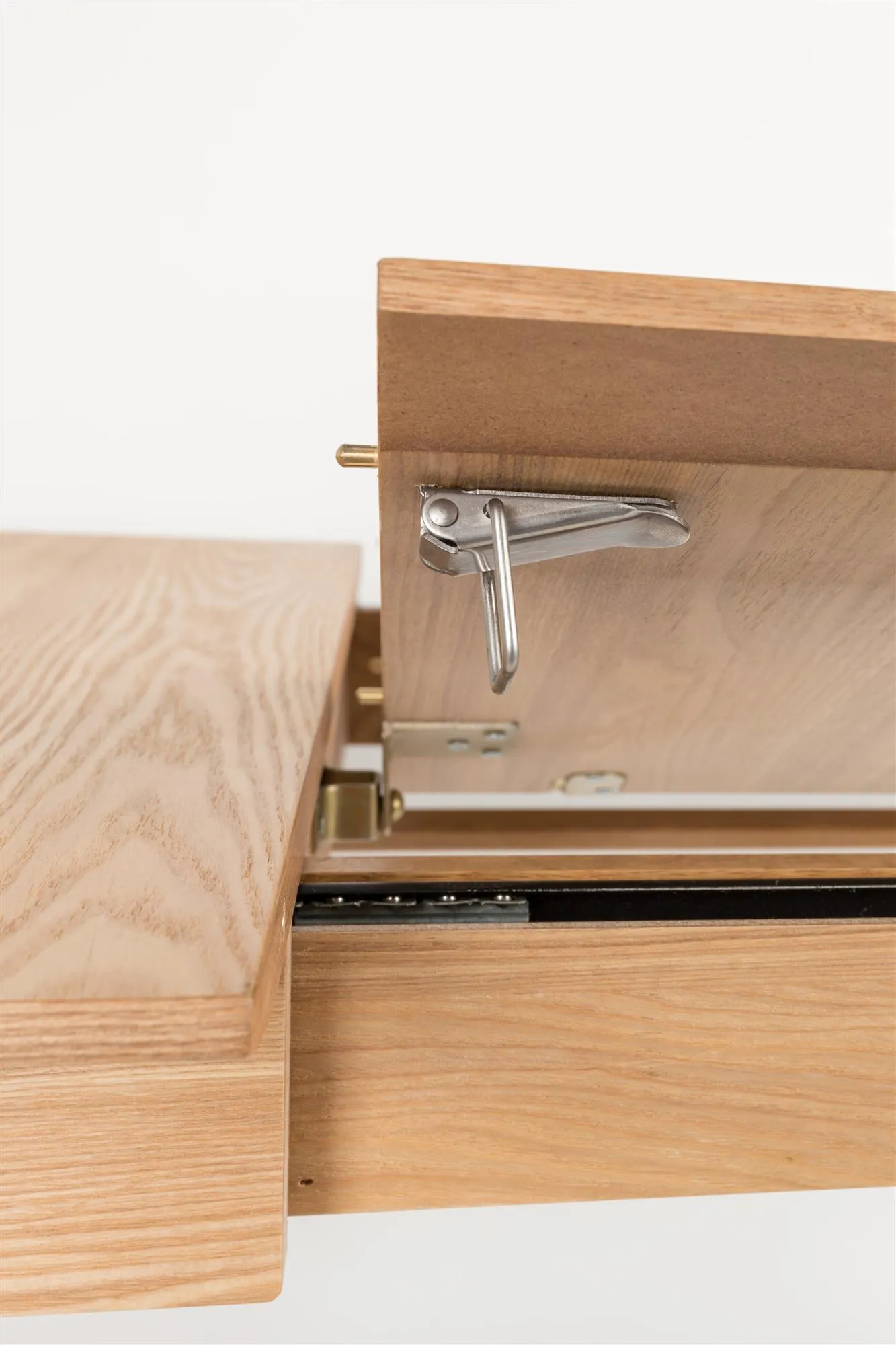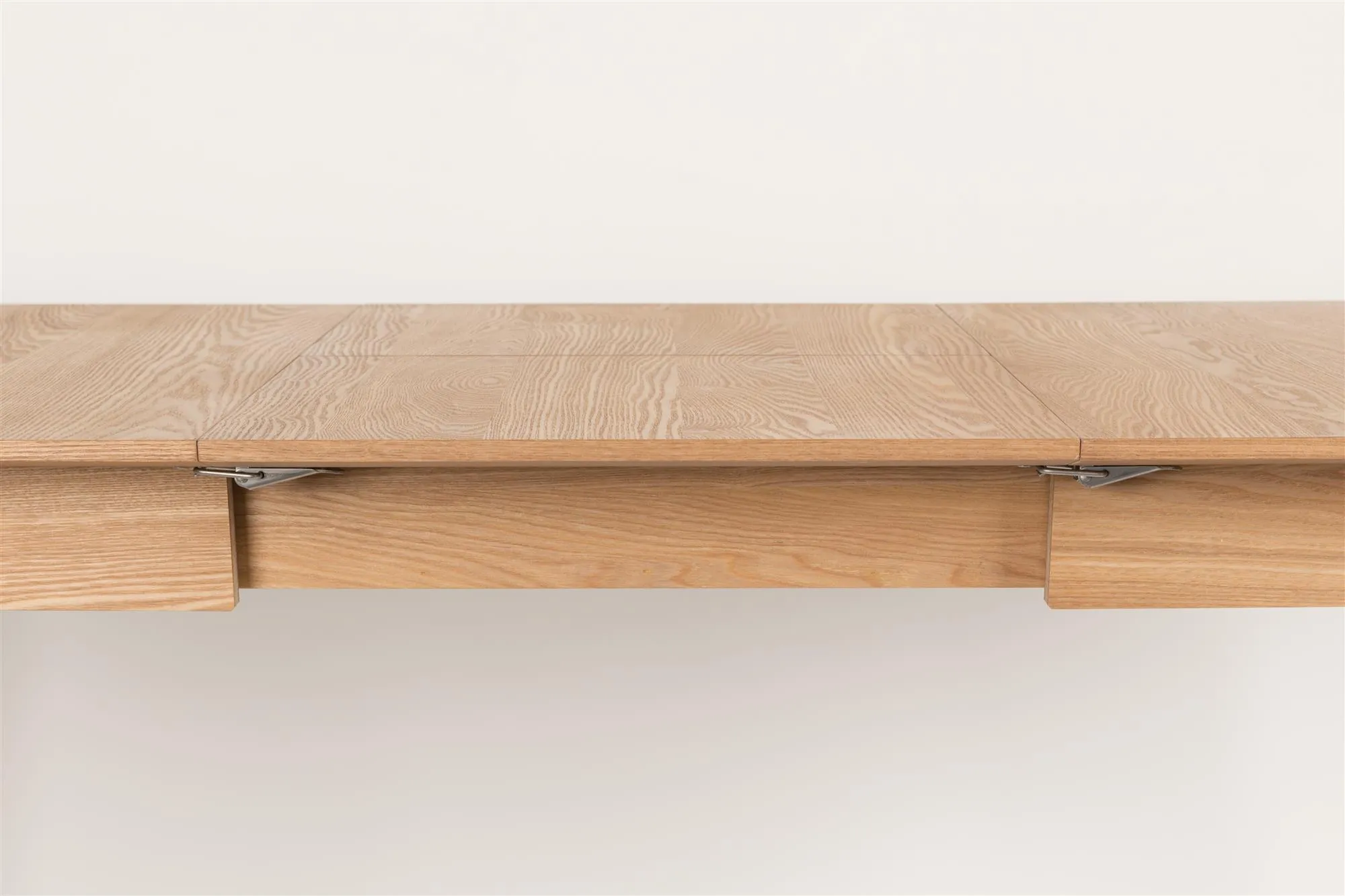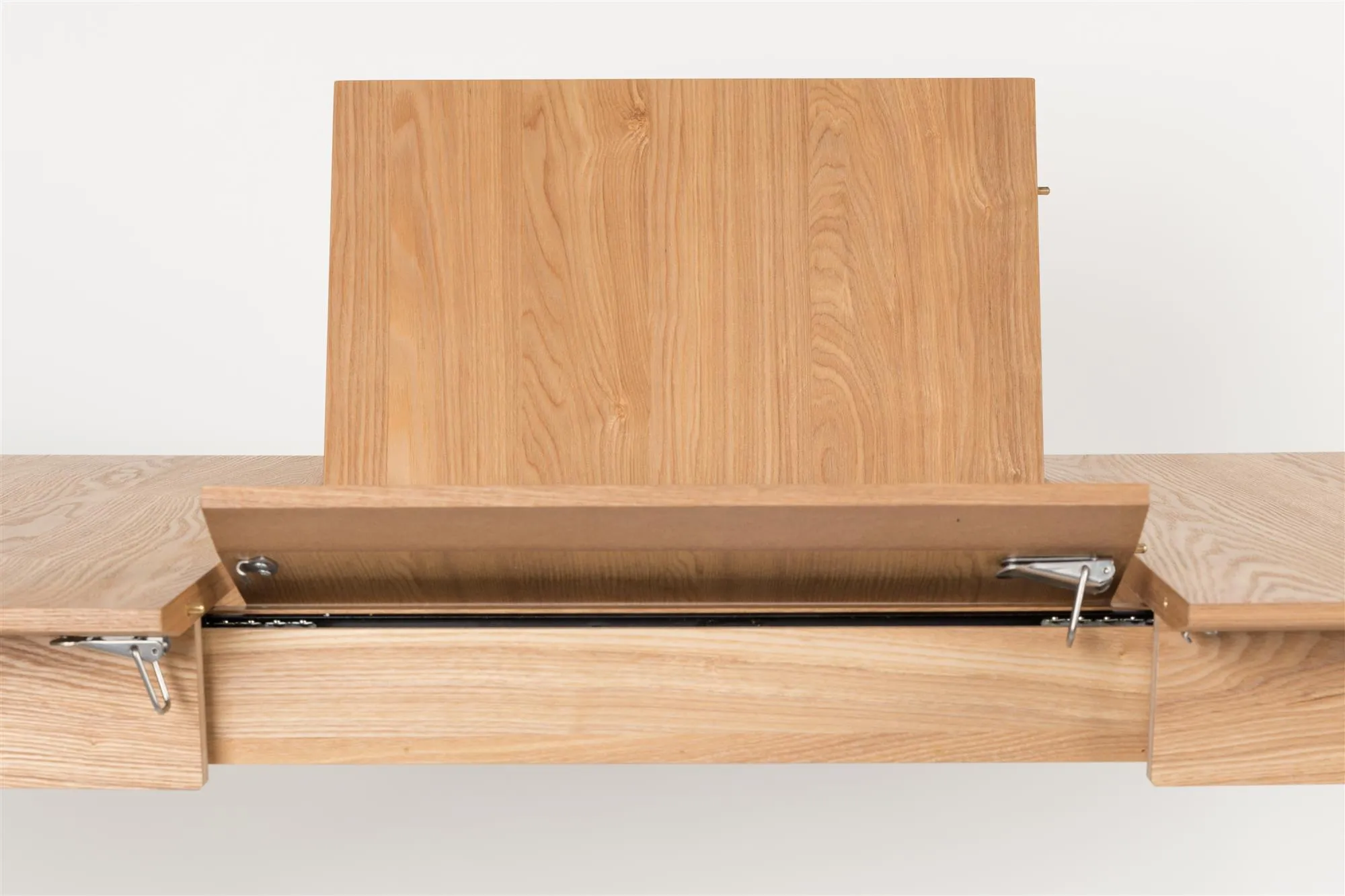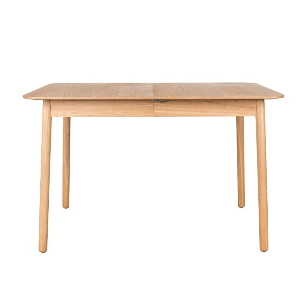La mesa de comedor Glimps de la marca Zuiver es una solución ideal para espacios pequeños gracias a su diseño extensible. Fabricada en madera de fresno con un acabado natural, esta mesa es compacta en su versión más pequeña mide 120×80 cm pero puede ampliarse hasta 162×80 cm, ofreciendo mayor capacidad para reuniones.