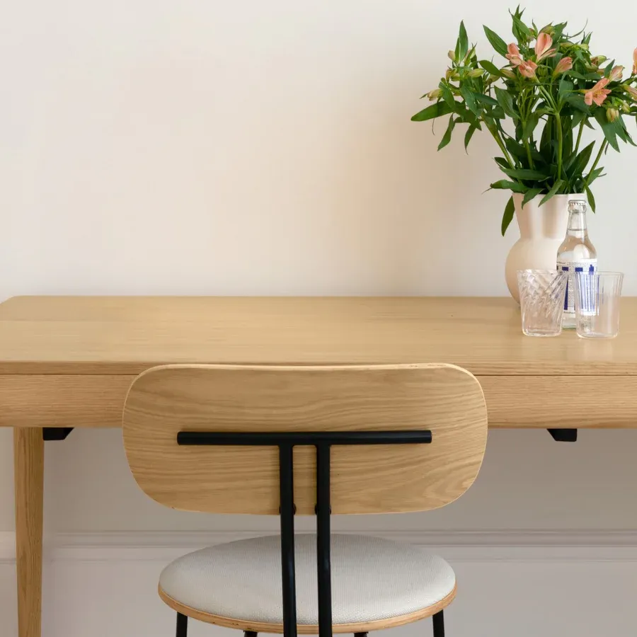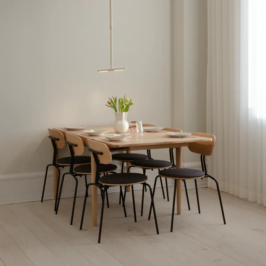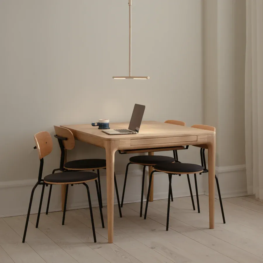 La mesa de comedor extensible Heart’n’Soul de la marca Umage en color natural, es una pieza que fusiona forma y funcionalidad. Diseñada por Søren Ravn Christensen, esta mesa está equipada con dos cajones en sus extremos, que permiten guardar rápidamente objetos cotidianos, manteniendo el espacio ordenado. Fabricada con roble macizo, MDF y acero, garantiza durabilidad y calidad. Con unas dimensiones de 75 cm de alto, 120 cm de largo y 90 cm de ancho, y un peso de 53 kg, es ideal para comedores de tamaño medio.