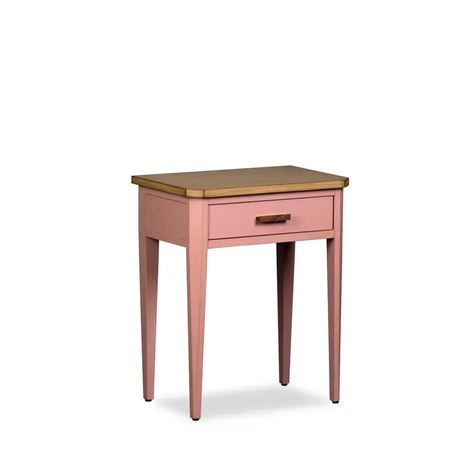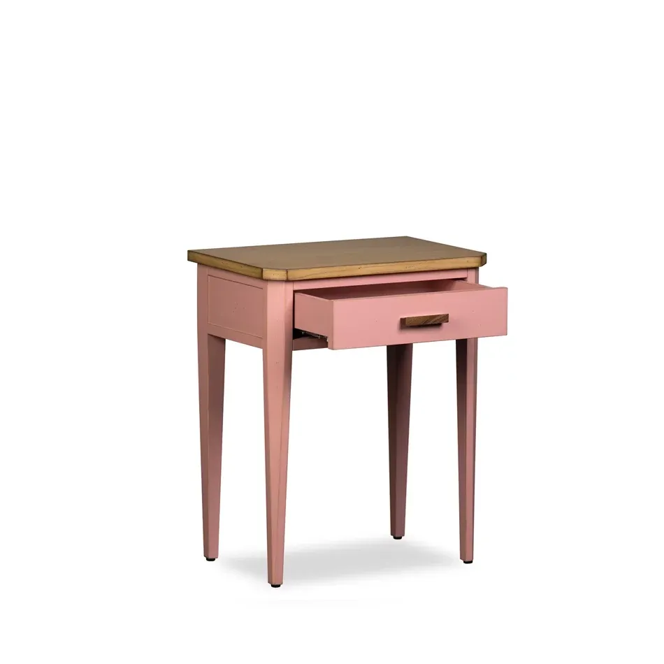 ¡Simple y directo al grano! La mesita de noche de Barcelona puede tener uno, dos y hasta tres cajones y diseños diferentes. Los tiradores son su característica especial, ya que están hechos de madera de nogal.