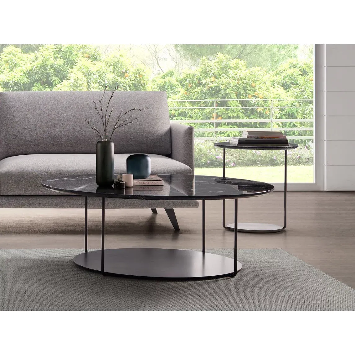 Domo es una colección de mesas de centro que funcionan tanto de forma independiente como en grupo. Es un proyecto que destaca por su simpleza formal, utilizando el acero para su estructura. Se presenta en dos versiones en cuanto a materiales, una con el sobre de piedra natural moldurado y la segunda con tablero en madera maciza. Estos sobres de materiales densos y compactos contrastan con la ligereza de su estructura creando una pieza versátil y con identidad.
