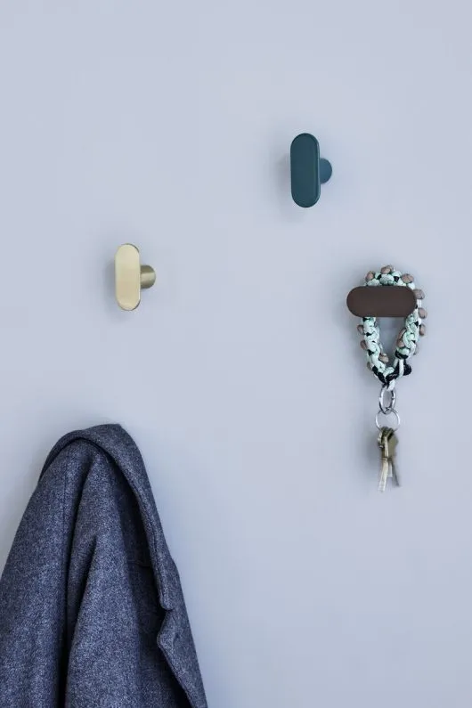 El perchero de pared Piccolo de la marca Hübsch, en su versión plana, está diseñado en metal negro con un acabado mate, aportando una elegancia discreta y moderna. Este perchero es versátil y se adapta a diversos estilos de interiores, ya sean modernos, clásicos o románticos. Perfecto para colocar en la cocina, baño o cualquier otro espacio, ya sea de forma individual o en fila con otros percheros.