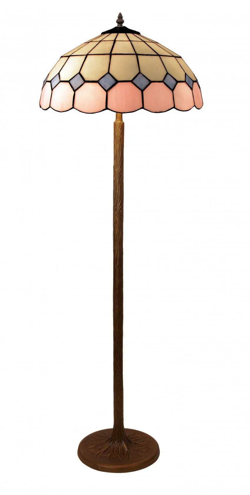 Este elegante pie de salón Tiffany de la Serie Pink destaca por su pantalla hecha a mano con vidrios de alta calidad, diseñados en un patrón de tonos rosas, beiges y azules, característico del estilo Tiffany. Su base en forma de árbol aporta un toque natural y rústico, mientras que la pantalla de 40 cm de diámetro asegura una iluminación difusa y cálida. Cuenta con tres luces que proporcionan una iluminación equilibrada, ideal para crear un ambiente acogedor en salones, comedores o cualquier espacio que necesite un toque de elegancia vintage. La Serie Pink de lámparas Tiffany es perfecta para quienes buscan una combinación de arte y funcionalidad en su decoración. Todas las lámparas llevan un certificado de autenticidad con su número de serie, que garantiza la calidad en la fabricación.