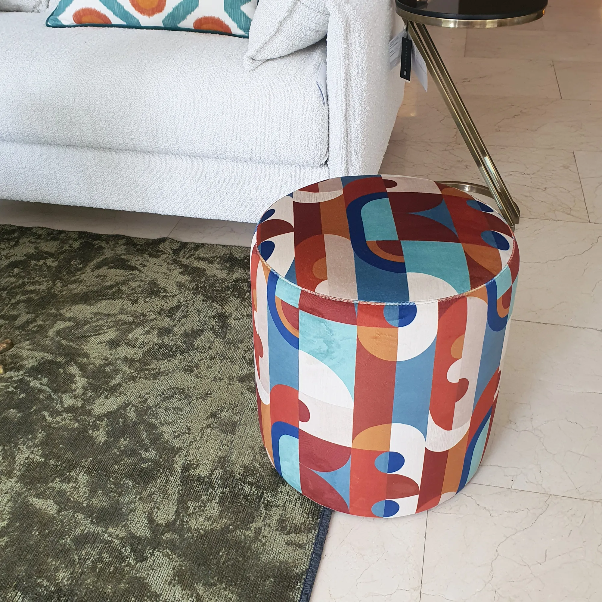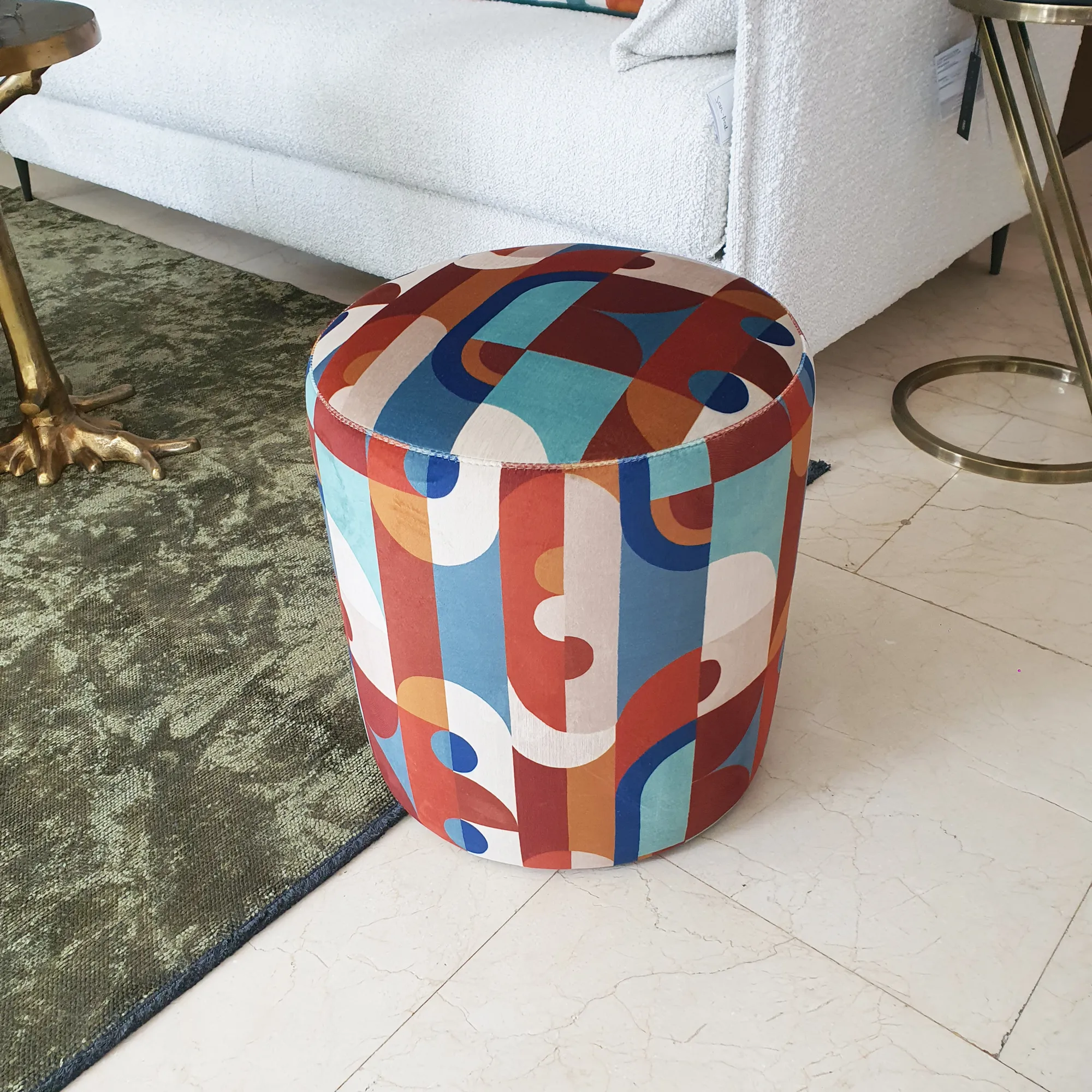 Puf redondo como forma cilíndrica tapizado en tela Réciproque 42890450 de Casamance.
