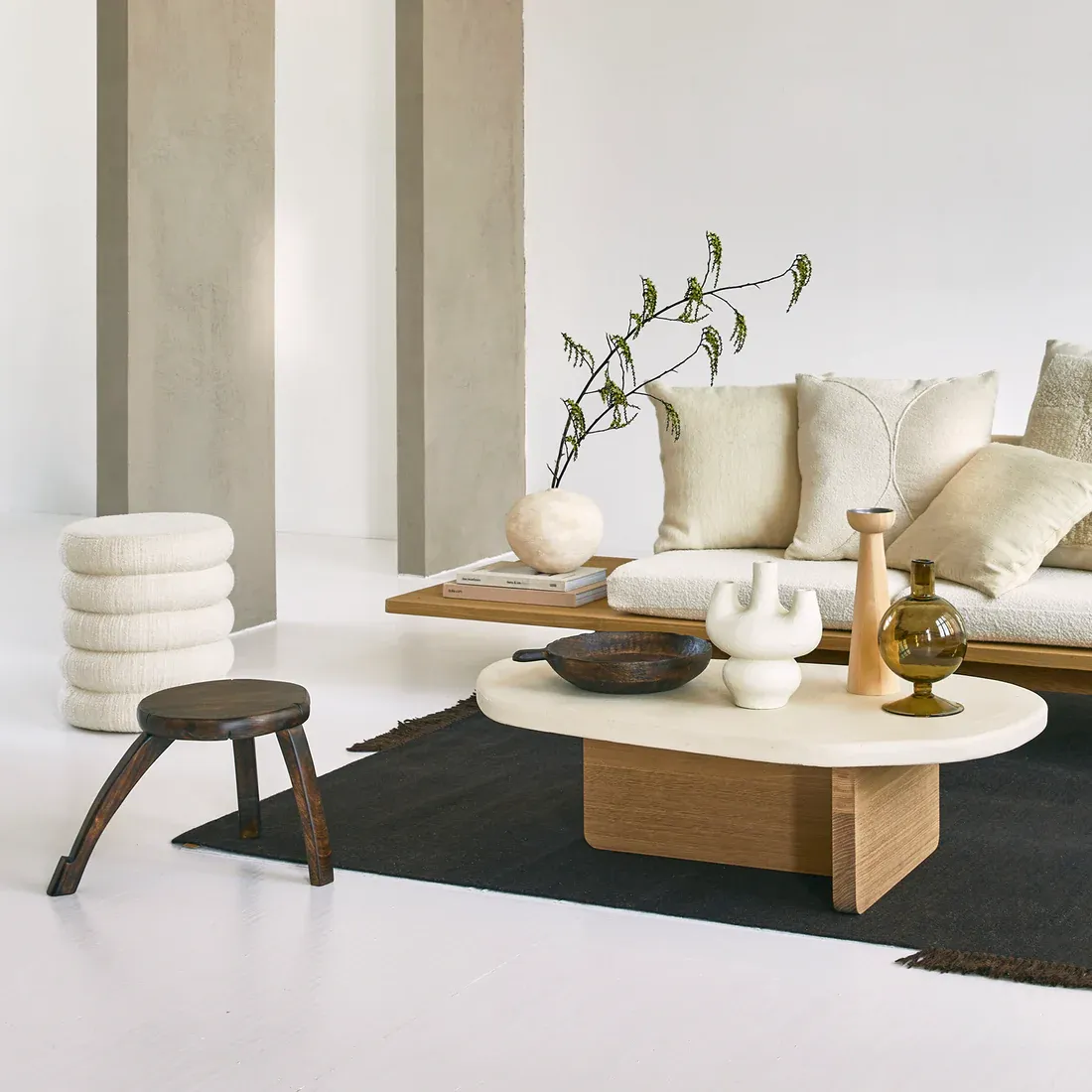 El puf Andria de Urban Nature Culture, confeccionado con un hermoso y suave tejido bouclé, te invita a recuperar el aliento. Con su gran sentido del tacto, su divertido diseño de círculos apilados y su tranquilo tono blanquecino, este puf te invita a poner los pies en alto y relajarte en el sofá, o acurrucarte en tu rincón de lectura, desconectando la realidad por un rato.
